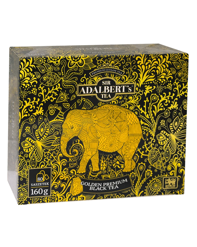 Sir Adalbert's Golden Premium Black Tea to kompozycja na bazie tradycyjnej receptury. Składa się wyłącznie z najwyższej jakości czarnej herbaty cejlońskiej, przygotowanej tak, aby rozpieszczać zmysły głębokim aromatem i złożonym bukietem. Po zaparzeniu zyskuje bursztynowy kolor, zachęcający do skosztowania zapach i karmelowe akcenty.